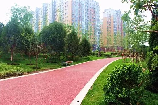 与其他公园不同的是,这里的健身步道采用透水混凝土铺设的,雨后地表水下渗,流向两边灌溉植物,满满的科技感。