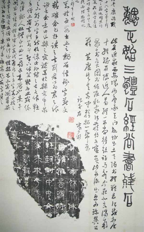 为了增刊古文经以补《熹平石经》独用今文经之不足,三国曹魏正始二年(241年),于魏都洛阳南郊太学讲堂西侧刻立《正始石经》。遗址在今河南省偃师县佃庄乡。这次仅刻写了《尚书》《春秋》《左传》(隐公至庄公)3经。它与《汉石经》不同,是用篆文、古文、隶书3种字体书写的,故又名《三体石经》。《正始石经》凡35碑。每石高2米,宽近1米。