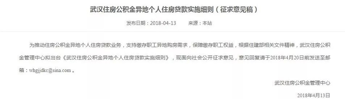今日,记者从武汉住房公积金管理中心获悉,我市拟对《武汉住房公积金异地个人住房贷款实施细则》进行修改,现面向社会公开征集意见(以下简称“意见稿”)。