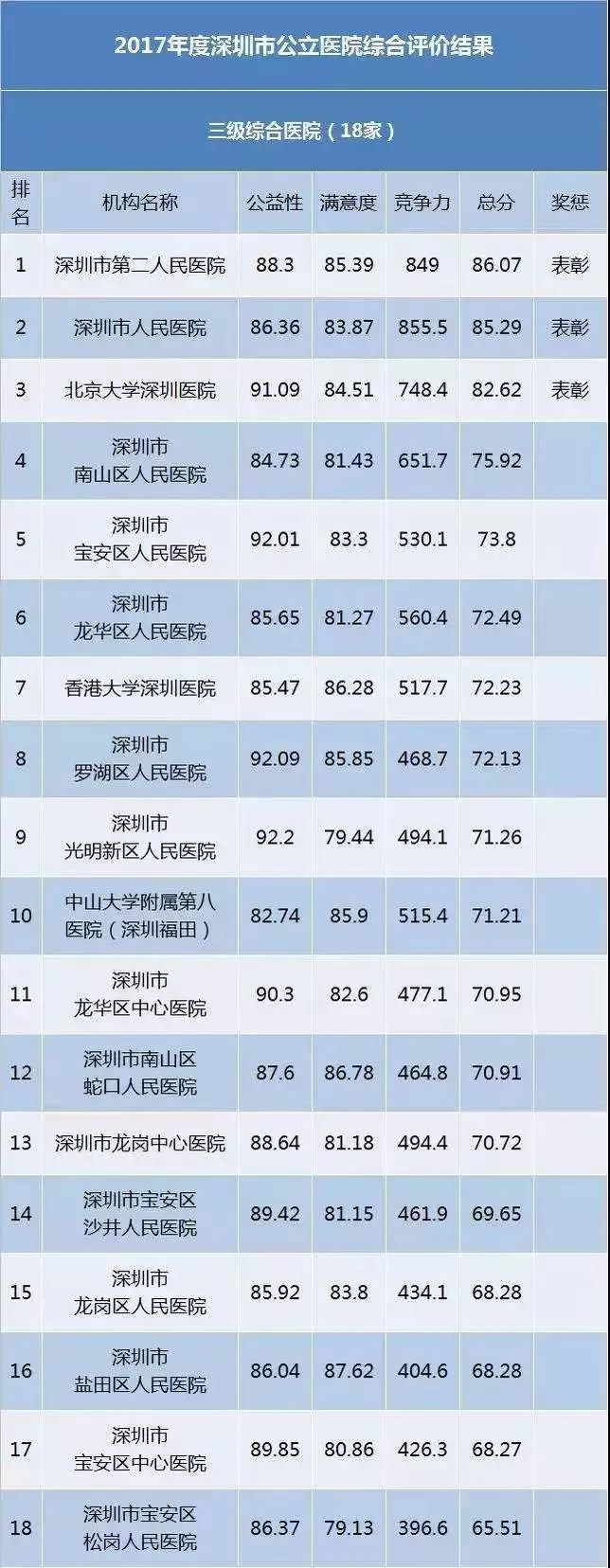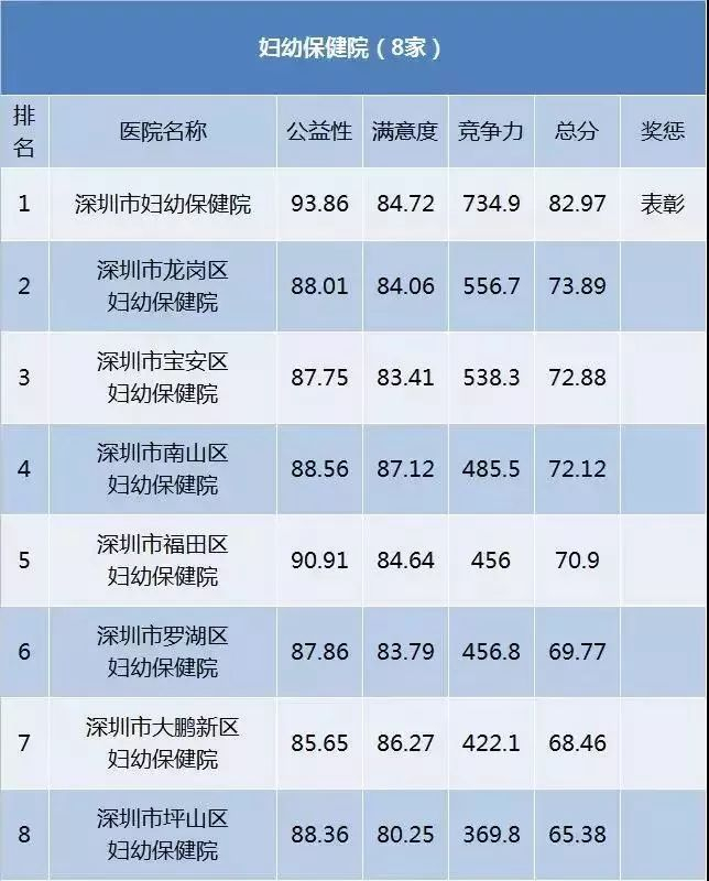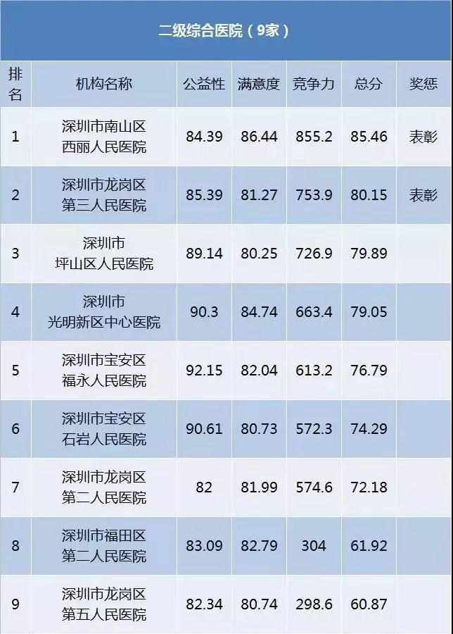 深圳卫计委最近发布了公立医院榜单,