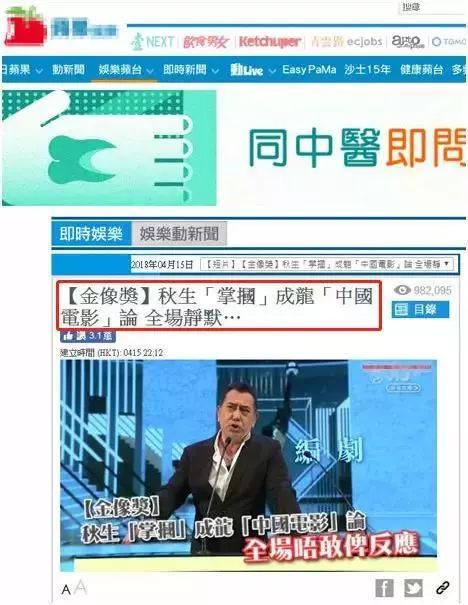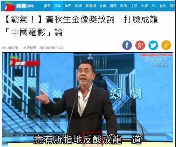 然后台湾绿媒转引香港媒体,直接把港媒的话变成黄秋生的直接引语,最终结果:黄秋生质问成龙!