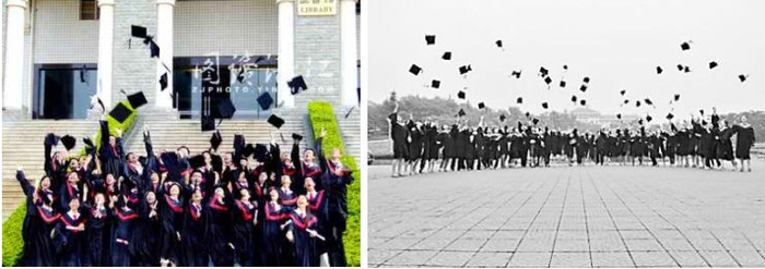 集体POSE定格扔学士帽,