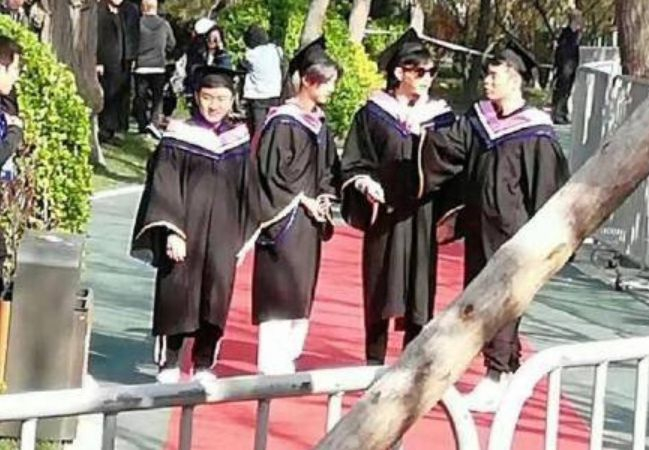 据报道,16日,《奔跑吧》在太原晋商博物馆录制。网友拍摄的图中,兄弟团穿着毕业学士服亮相,活力十足。