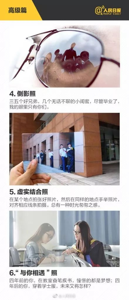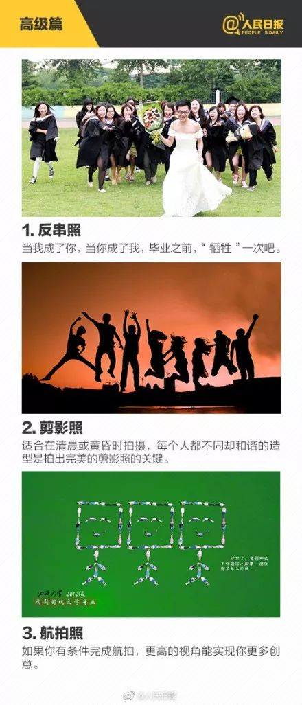 只会抛学士帽?毕业照进阶篇了解下…距毕业不足80天,转眼又到毕业季,你的毕业照打算怎么拍?毕业照,是青春的纪念册,也是创意的竞技场。怎样让自己的毕业照更加出彩?反串照、美剧照、航拍照、剪影照、…了解下: