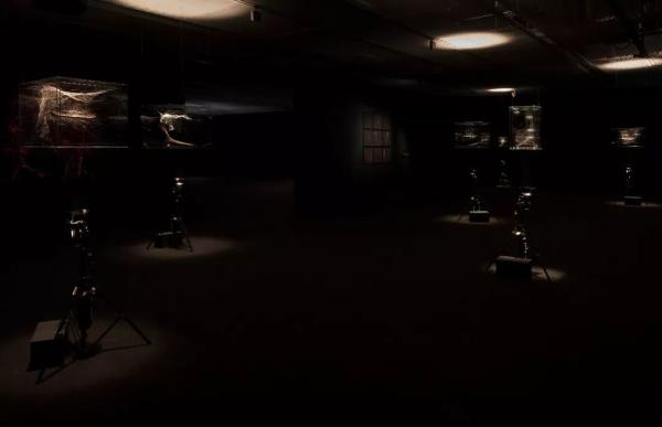 与明亮的二楼展厅相比,位于三楼的展厅则营造出了昏暗的环境,意图体现出一个微观世界和宏观世界:细胞和星球、蛛网和星系,也试图增强观众对微观和宏观世界关联的感知。而微观世界的代表“蜘蛛网”也正是艺术家的作品的灵感源泉。三楼展柜中的作品是其通过对蜘蛛网进行数字三维扫描研究,并制作的装置作品。