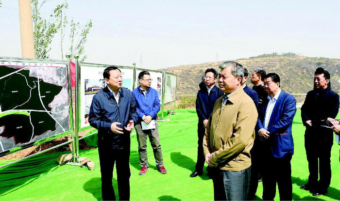 图片说明:省委常委、市委书记罗清宇在杏花岭区中华老字号酿造产业特色小镇调研项目建设情况。 梁琛摄