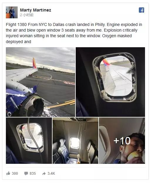 飞机引擎爆炸半个身子在外 其它人用外套堵窗户美国西南航空公司一家客机引擎在空中发生爆炸,导致一名乘客死亡,飞机随后在费城机场紧急迫降。