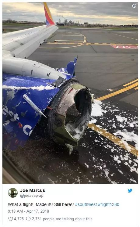 2016年,该公司一架从新奥尔良飞往奥兰多的客机也曾发生了引擎空中爆炸,所幸当时无人受伤。