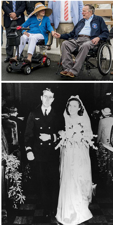 芭芭拉90岁生日时说自己是“世界上最幸福的人”,当时她坦言活到90岁已实属不易,经历过的手术和病魔的折磨“远远超过公众的想像”。但在这样一个充满爱与亲情的家庭当中,任何困难都可以被克服。而对于一同走过七十余年岁月的丈夫,芭芭拉充满感激。她在为史密斯学院校友季刊撰文时写道,“他是世界上最体贴的丈夫,而我对他的爱一如七十多年前刚结婚时那样”。老布什也在自传中写道:虽然我和她是两个人,但我们早已分不开。而对于当年在圣诞舞会上的相遇,老布什曾经形容那样的经历如同小说一样不可思议,“我已经想不起来当天那个场合其他人的打扮,但是我清楚地记得芭芭拉穿着红绿相间的礼服”,当时他18岁,芭芭拉17岁。两年后也就是1945年,19岁的芭芭拉中途从史密斯学院辍学,两周后她便嫁给了老布什;而史密斯学院,这所美国著名的私立女子学校,在芭芭拉成为第一夫人的1989年,决定授予她名誉学位。