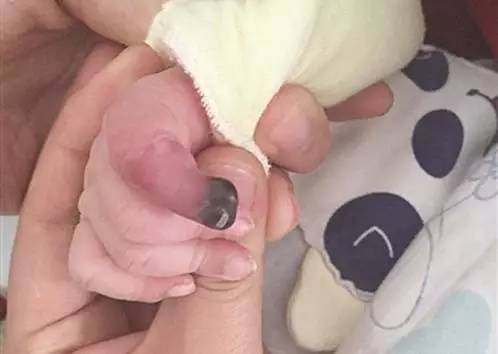 河北易县刚刚出生才10天的宝宝因为戴手套导致手部肌肉坏死,当时孩子的整个右手已经变成了黑紫色,凉凉的,没有什么温度。经过医务人员一个月的救治,孩子终于幸运地保住了小手。
