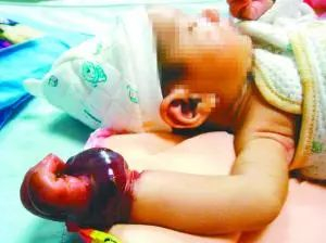 连云港的男婴小宝生下来就好动,平时喜欢用小手抓脸。出于保护,父母就给他戴了个手套戴了10多天后,小宝左手的小手指被手套里面线头缠住,导致手指一截坏死只能手术切除而此时小宝出生才25天。
