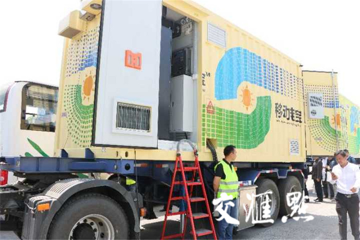 交汇点讯 由于充电桩布点限制,“有桩无电”、“有车无桩”是困扰新能源车的一大瓶颈。如果电动汽车途中电耗光了,附近却没有充电桩,可让驾车人犯囧了。18日在麒麟高新园发布的车载移动电源系统,可解燃眉之急。驾车人一个电话,或在手机APP上发出求救申请,移动电源车即可驶来为你的电动车快速充电。