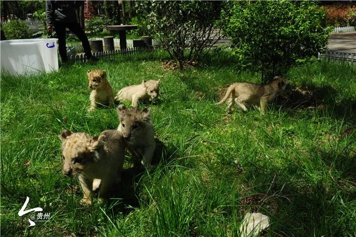 3月8日,贵州森林野生动物园一只7岁非洲母狮子产下6只狮仔,创造了狮子一胎最多产6崽的全国纪录。遗憾的是母狮子习惯性弃养了自己的宝宝,其中一只小宝宝由于体质特别弱,消化系统功能不健全,出生两天后夭折。所幸存活的5只狮仔在经过人工饲养40天后身体健康,4月17日,首次走出育幼室与阳光、草地拥抱。