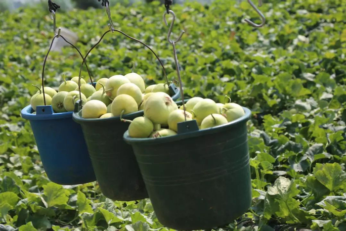 果农从果苗就开始重重筛选,生长过程坚决不使用膨大剂、催熟剂,让甜瓜自然成熟。