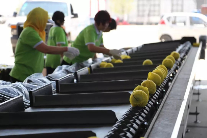 最后,还要用机器筛选一遍,只有甜瓜的大小、形状、重量、色味都符合标准的,才能被选中送到你手中。