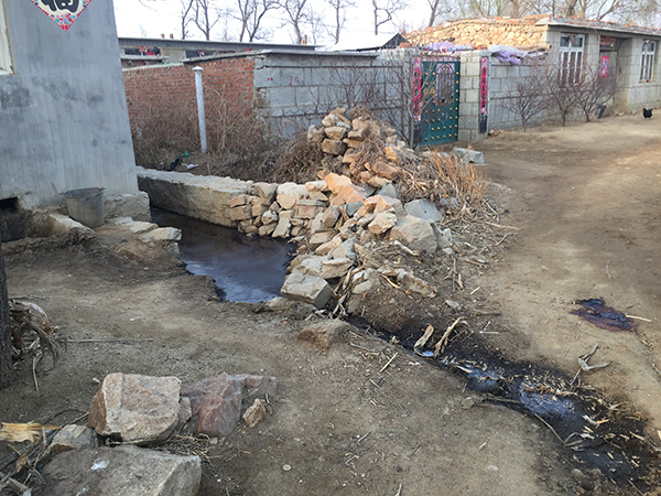 崔某会养了不止十几头猪,院子墙外有四个排粪口,粪水沿着墙边胡同的排水道流到几户人家门前的路上。村民王伟(化名)告诉记者,多的时候,粪水会顺着道路流到几十米外的水塘,那是冬天一些村民洗衣的地方。