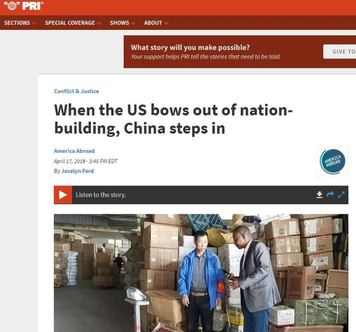 4月18日,美国国际公共广播电台(PRI)网站刊发专题报道称,当美国不再对“穷国”重建施以援手,中国却反其道而行之,给这些国家带来希望。