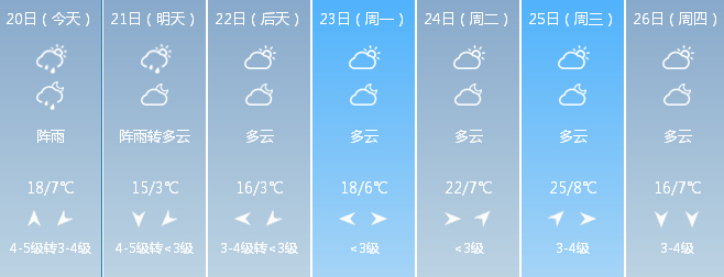 另外,19日夜间-21日白天全省自西向东有5级左右风,其中20日南部地区阵风可达7-8级,并可能伴有扬沙、浮尘天气,请注意预防。