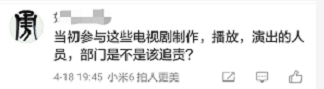 更有不少网友认为,要严查导演、编剧责任,加强把关。