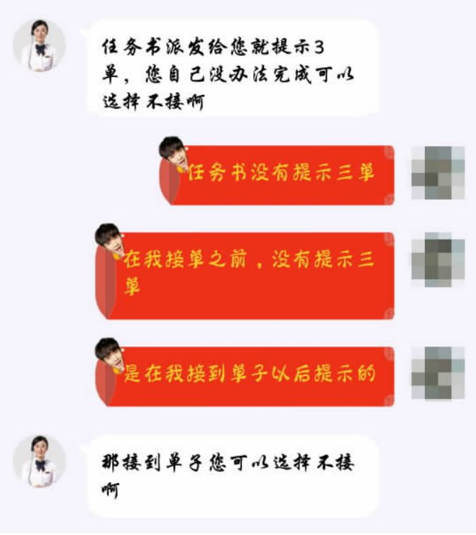 业务员咨询:任务书派发给您就提示3单,您自己没办法完成可以选择不接啊