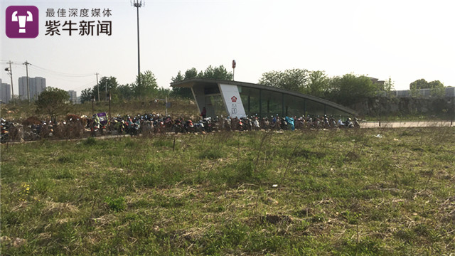 乘车区除了记者,看不到其他人。从1号口走出站外,出口四周被电动车包围,放眼望去很壮观。除了地铁公司一幢控制中心大楼矗立在地铁站旁,周围乱石中杂草丛生。环顾四周,这处地铁站是建在高高的丘陵地上。除了南侧有一个自然村落,方圆一公里范围内不见居民小区。