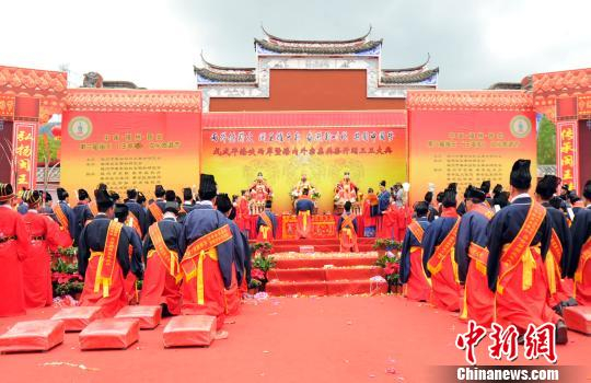 4月20日,中国?福州?晋安第六届闽王(王审知)文化旅游节在福州市晋安区新店镇闽王陵园闽王纪念广场举行。 陈建国 摄
