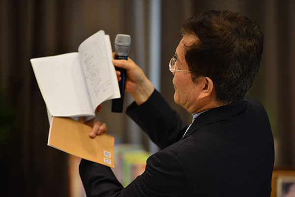 赵丽宏展示自己诗集《疼痛》的手稿