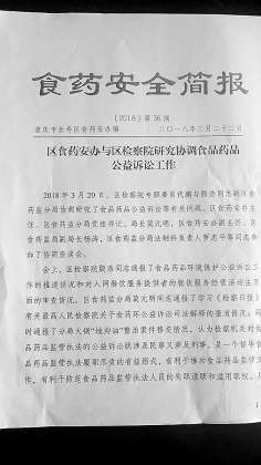 重庆市长寿区食药监分局收到检察建议第二天就落实建议。