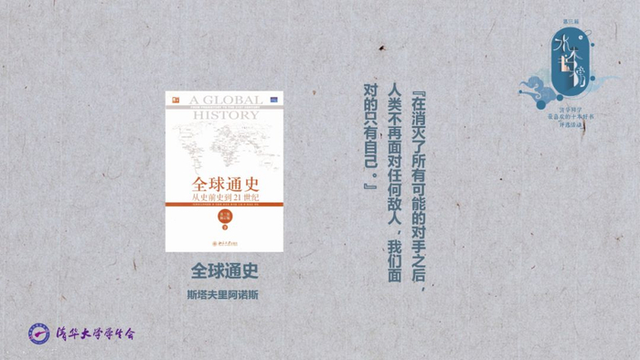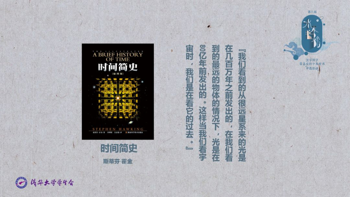 现场揭晓第三届“水木书榜·清华学生喜爱的十本好书”:《白鹿原》《霍乱时期的爱情》《菊与刀》《理想国》《毛泽东选集》《全球通史》《人类简史》《三体》《时间简史》《艺术的故事》。邱勇校长向同学们推荐的《艺术的故事》深受同学喜爱,高票入选。