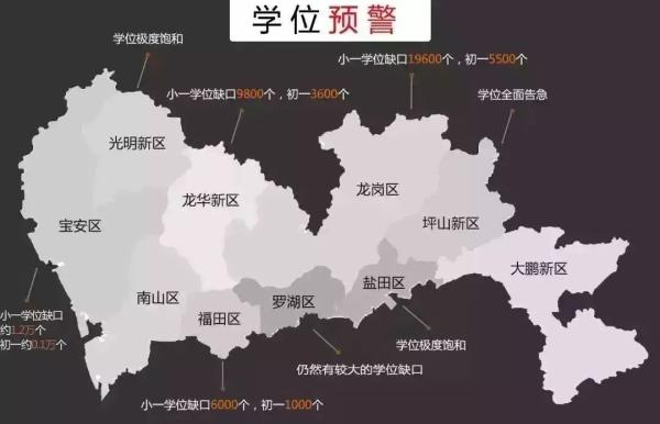 据统计,2018年深圳学位持续紧张,预估学位缺口已超5.58万,以龙岗区为例,虽然将新增义务教育公办学位1.5万个以上,但仍分别存在小一19600个、初一5500个缺口。