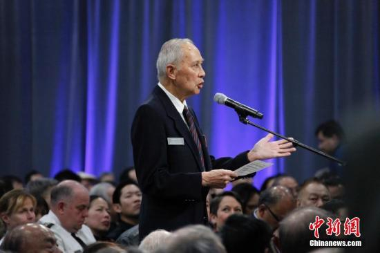 图为85岁的华裔退伍老兵吴英超作为华社代表发言,对当局的道歉作出回应。中新社记者 余瑞冬 摄