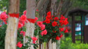 这里的人们都已经换上的夏天的衣服,小孩子在老人和父母的陪伴下在这里纳凉赏花,过往的路人时不时拿出手机拍下玫瑰花的芳影。