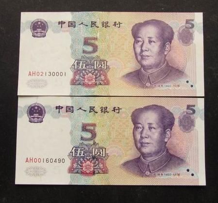 99版5元是第五套人民币中的第一版5元,自99年发行之后一直流通与市场之上。2005年,第五套人民币发行了第二版之后,99版5元纸币就已然逐渐淡出了市场,虽然名义上还是在市场上流通,但是实际上却银行却已然开始大力回收。收藏就玩的就是要“藏之稀少,藏人之未藏”。那99版5元收藏价值如何呢?