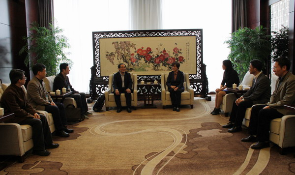 揭牌仪式开始前,校党委书记熊晓梅在国际学术交流中心与蔡荣根院士举行会谈,双方就大学基础学科建设、人才培养、项目合作等方面进行了交流探讨。