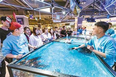 “开业促销优惠力度大,帝王蟹、大龙虾等鲜活的海鲜价格比较亲民,比在海鲜酒楼吃饭便宜。”正在盒马店内就餐的市民张女士表示,盒马的出现让她感受到了全新的一种生活方式。