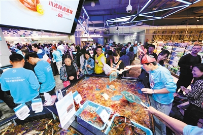 盒马鲜生门店开张 市民蜂拥来尝鲜