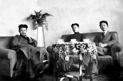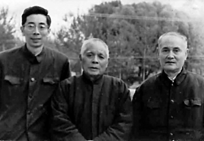 李何林(中)与未名社成员王青士(左)、李霁野在一起。