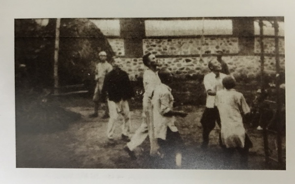 在抚宁县,美军飞行员与八路军进行篮球比赛。
