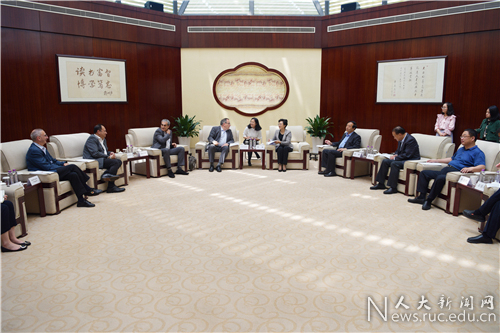 法国驻上海总领事馆教育领事夏睿思(Fabien Chareix),文化教育合作处高等教育合作项目主管刘乐陪同来访,中国人民大学黎玖高、朱信凯、石佳友以及中法学院法方代表魏让方(Jean-François Vergnaud),中法学院法方办公室主任慕建明(Alain-JamesPalisse)、苏州校区教务部主任肖逸秋、财务部主任祁萱、国际事务部执行主任陈超等参加会见。
