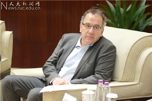让•尚巴兹对靳诺获授法国国家荣誉军团骑士勋章表示祝贺,并介绍了法国索邦大学的基本情况。他表示,合并后的索邦大学,整合了医学、理工、人文社科等领域的学科优势,不仅提升了学校在全球高校中的竞争能力,也将为中法学院进一步扩大办学领域、丰富办学层次注入全新动力。让•尚巴兹表示,中法学院是索邦大学与人民大学在人文社科领域合作的重要项目,是中法高等教育交流与合作的重要平台。在新的合作框架下,索邦大学将一如既往地支持中法学院的建设发展,与中国人民大学携手培养具有卓越实践能力、适应时代发展的高端复合型人才,为推进两国经济社会发展贡献力量。
