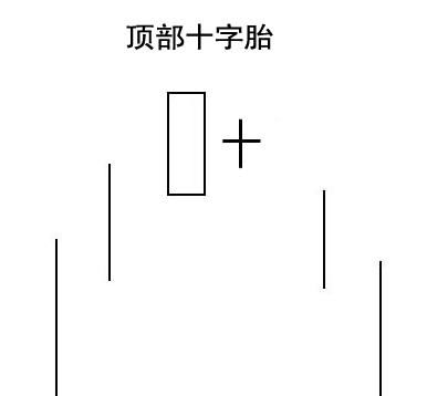 如图所示图属顶部出现十字胎形态,在上升趋势中,某日升势以大阳线完成。但随后出现十字星体,完全包藏在第一支大阳线内。