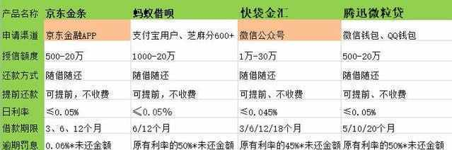 下面这张图把以上的接入渠道、利息、以及还款期数都做了个详细的说明,你可以根据自身的情况合理选择。