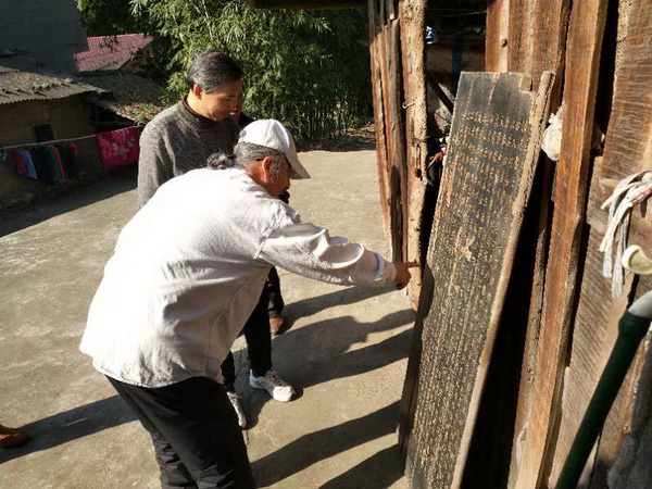 3月8日罗南陔外孙、中央研究院史语所逯钦立之子逯弘捷(前)在辨识匾文。后为宜宾市翠屏区南广镇陈塘关社区书记李传才。 宜宾市台联会 廖建麒 摄