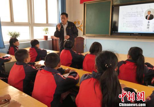 4月26日,兰州大学书法研究所所长、甘肃省书法家协会副主席李恒滨为甘谷当地学生讲授书法知识。(资料图) 艾庆龙 摄