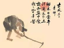 《锄禾》是一首唐诗,作者为李绅。此诗描绘了在烈日当空的正午农民田里劳作的景象,概括地表现了农民终年辛勤劳动的生活,最后以蕴意深远的格言,表达了诗人对农民真挚的同情之心。全诗语言通俗、质朴,音节明快、上口,流传极广,妇孺皆知。其中的“谁知盘中餐,粒粒皆辛苦”是中国传统的“治家格言”,提醒人们注意节约用度,珍惜劳动成果。