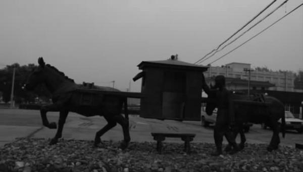 位于今天阳坊胜利饭店前的骡驮轿模型(定宜庄摄于2003年)