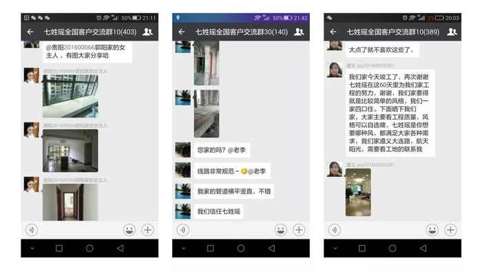 ▲七姓瑶透明装修微信群部分截图