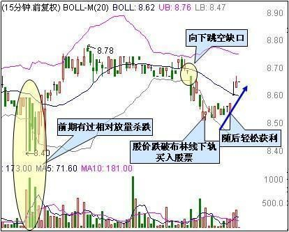 第三,当股价跌破了15分钟布林线下轨时,那此时就是进场的信号了,这类型的股票一定把握好。