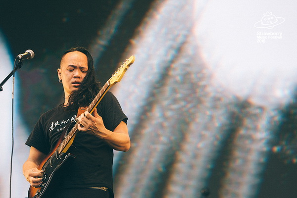 木推瓜&周云蓬开场在阴天的刺眼光线中。“我们是木推瓜,我们演摇滚。”他们壮烈的顿挫和老周的吟咏抽象成祈雨式。听不清宋雨喆在唱什么,只能看到他怒目金刚样的一帧帧定格画面。“生命它要朴素地活着,就要继续唱歌”,这样的话也许在迷笛的舞台会有更多共鸣,或至少不是空掷在如此闷热的空气里。