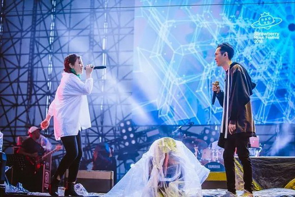 左小祖咒和窦靖童的表演时段有大块重合,两难时大雨劈头浇下。窦靖童的魅力和雨势势均力敌,淋得精透才能表达对“老公”的爱。